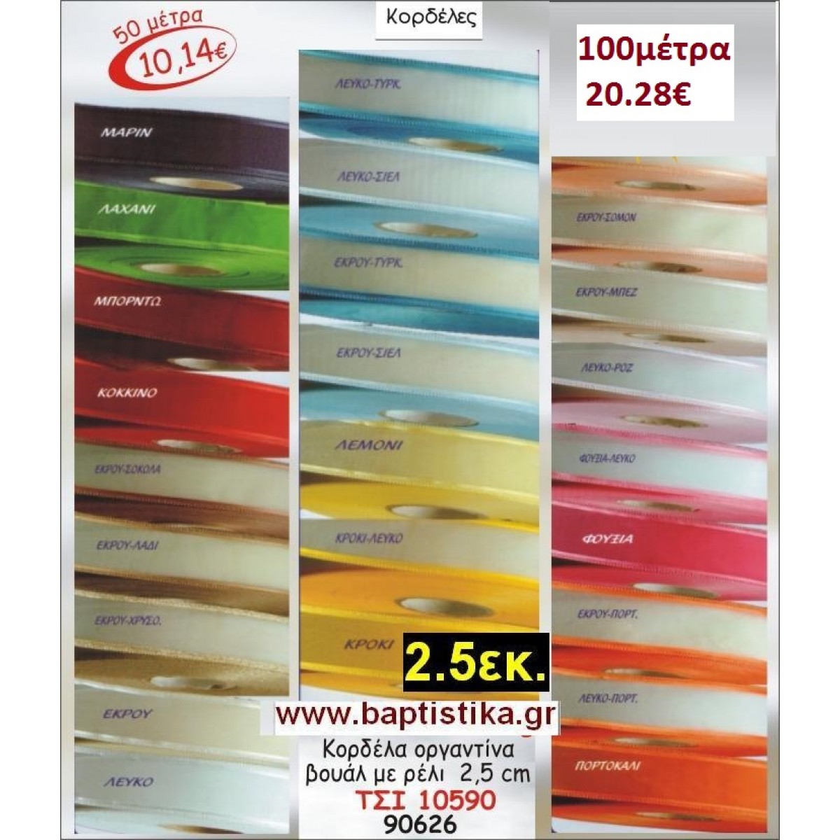 2.5 εκ. ΚΟΡΔΕΛΑ ΟΡΓΑΝΤΙΝΑ ΒΟΥΑΛ ΜΕ ΡΕΛΙ ΤΣΙ-10590