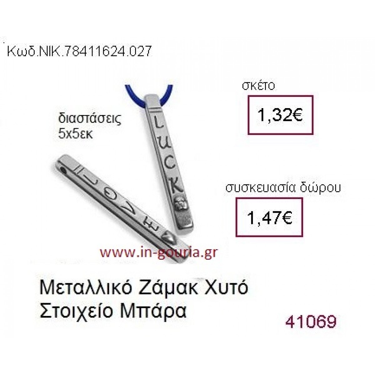 ΜΠΑΡΑ ΕΥΧΩΝ επάργυρο γούρι-δώρο ΝΙΚ-7841-1624-027