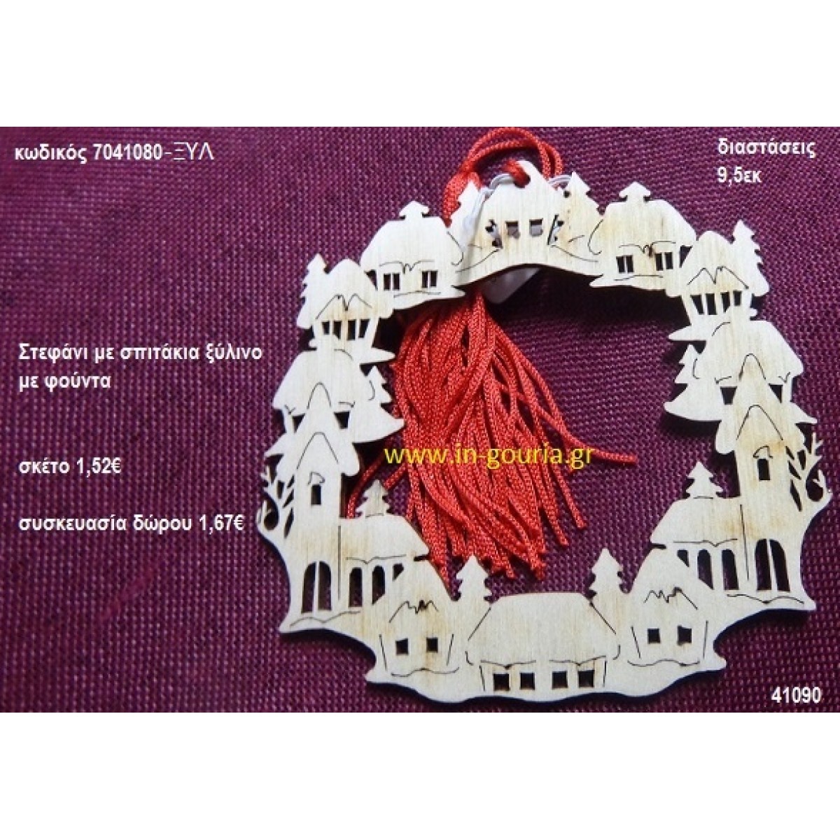 ΣΤΕΦΑΝΙ ΜΕ ΣΠΙΤΑΚΙΑ με φούντα ξύλινο γούρι- δώρο ΞΥΛ-7041080