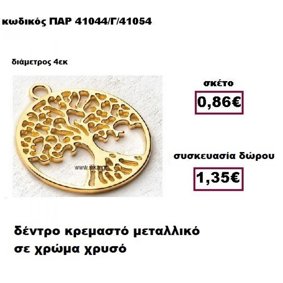 ΔΕΝΤΡΟ επίχρυσο μεταλλικό μοτίφ γούρι-δώρο ΠΑΡ-41044/Γ/41054