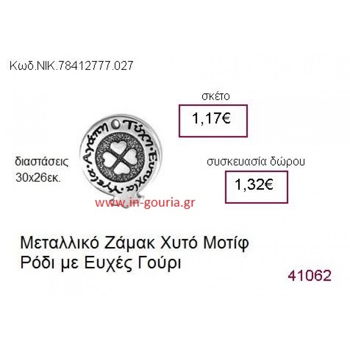 ΤΡΙΦΥΛΛΙ επάργυρο γούρι-δώρο ΝΙΚ-7841-2777-027