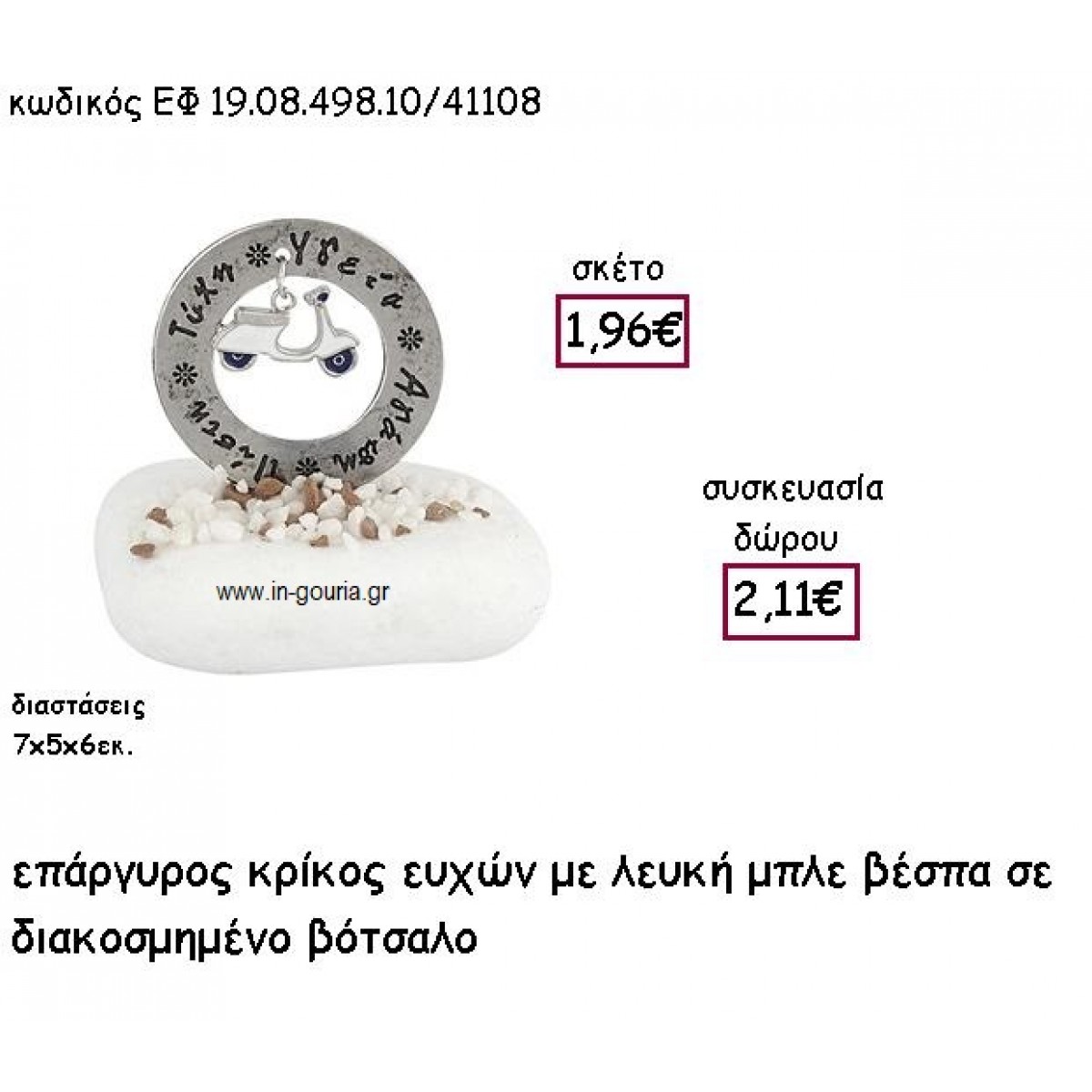 ΚΡΙΚΟΣ ΕΥΧΩΝ ΕΠΑΡΓΥΡΟΣ ΜΕ ΛΕΥΚΗ ΒΕΣΠΑ ΣΕ ΒΟΤΣΑΛΟ για γούρι - δώρο ΕΦ 19.08.498.10Α.Λ/41108