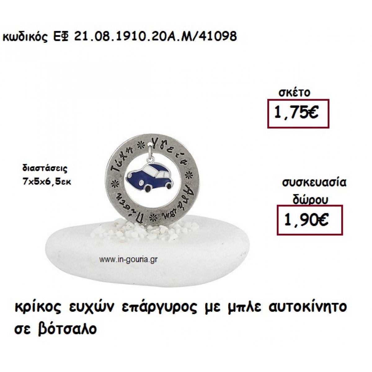 ΚΡΙΚΟΣ ΕΥΧΩΝ ΕΠΑΡΓΥΡΟΣ ΜΕ ΜΠΛΕ ΑΥΤΟΚΙΝΗΤΟ ΣΕ ΒΟΤΣΑΛΟ για γούρι - δώρο ΕΦ 21.08.1910.20Α.Μ/41098