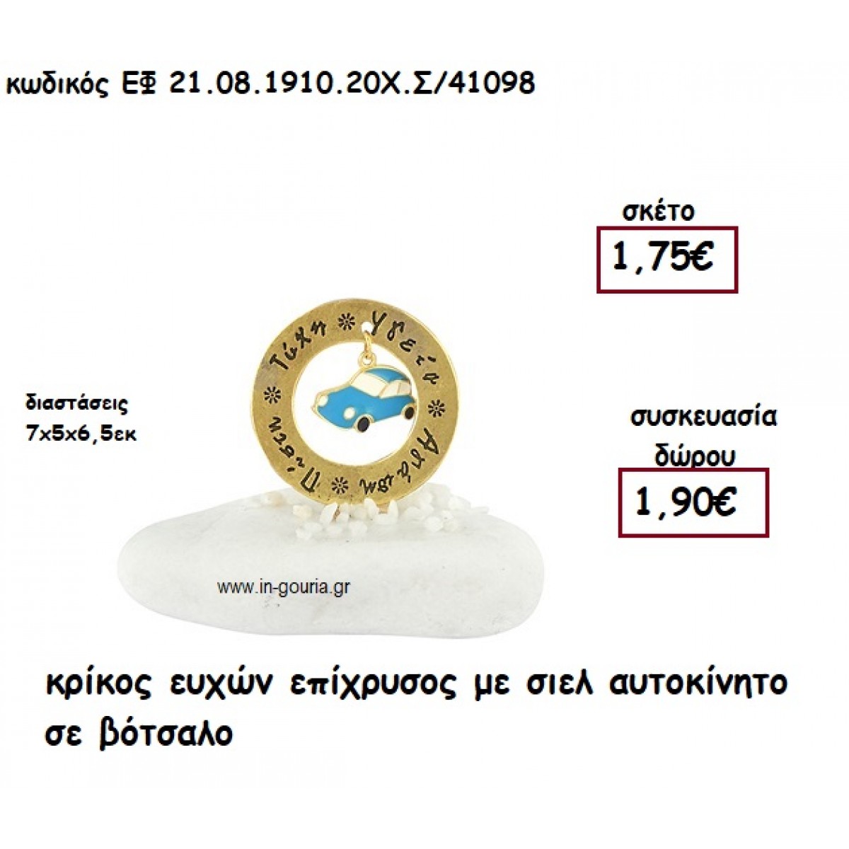 ΚΡΙΚΟΣ ΕΥΧΩΝ ΕΠΙΧΡΥΣΟΣ ΜΕ ΣΙΕΛ ΑΥΤΟΚΙΝΗΤΟ ΣΕ ΒΟΤΣΑΛΟ για γούρι - δώρο ΕΦ 21.08.1910.20Χ.Σ/41098