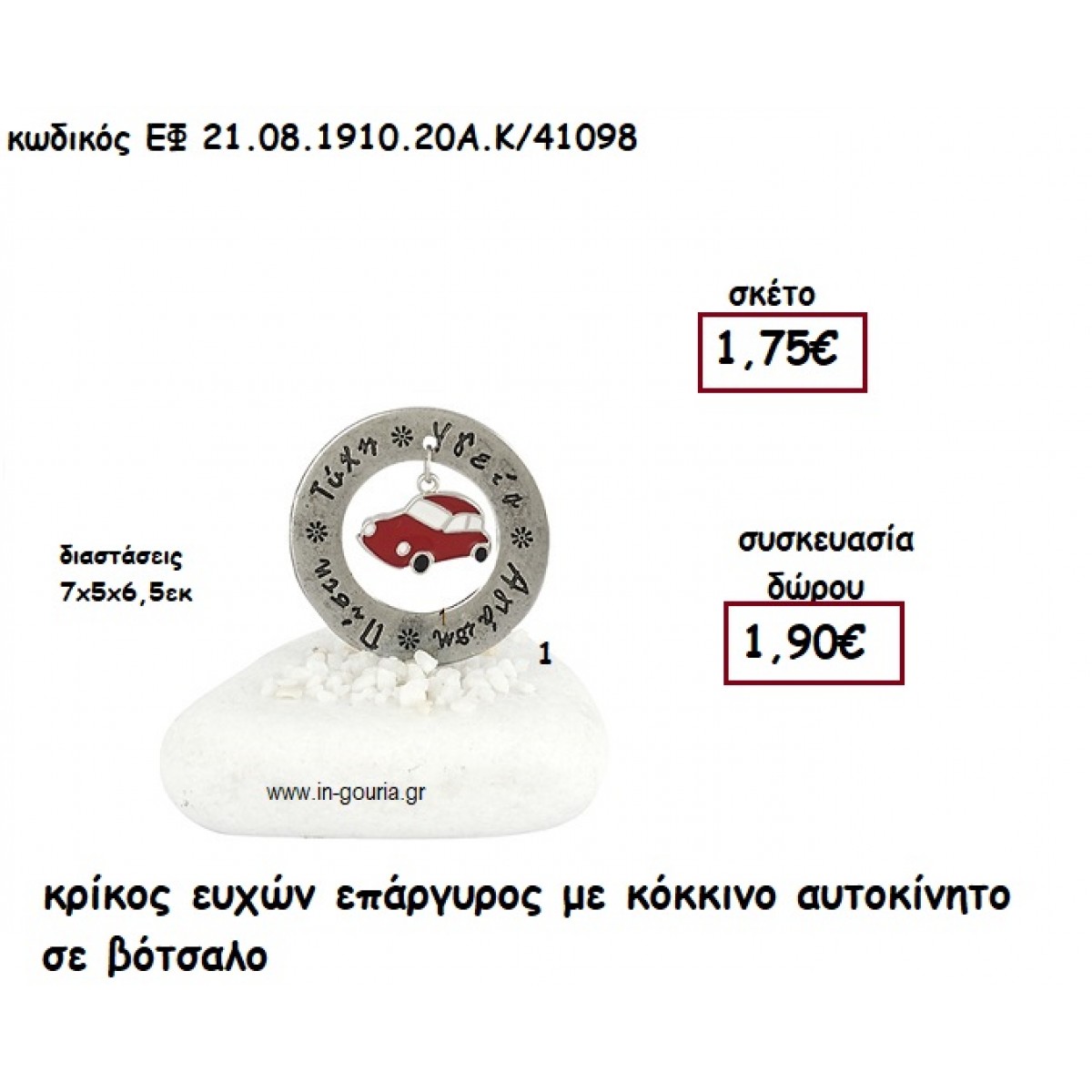 ΚΡΙΚΟΣ ΕΥΧΩΝ ΕΠΑΡΓΥΡΟΣ ΜΕ ΚΟΚΚΙΝΟ ΑΥΤΟΚΙΝΗΤΟ ΣΕ ΒΟΤΣΑΛΟ για γούρι - δώρο ΕΦ 21.08.1910.20Α.Κ/41098