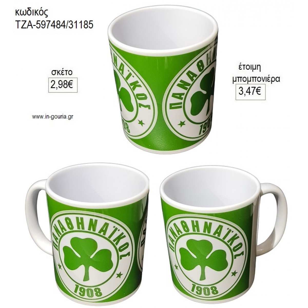 ΤΥΠΟΥ ΠΑΝΑΘΗΝΑΙΚΟΣ ΚΟΥΠΑ για μπομπονιέρες γούρι δώρο ΤΖΑ-597484/31185 2.98€!!!