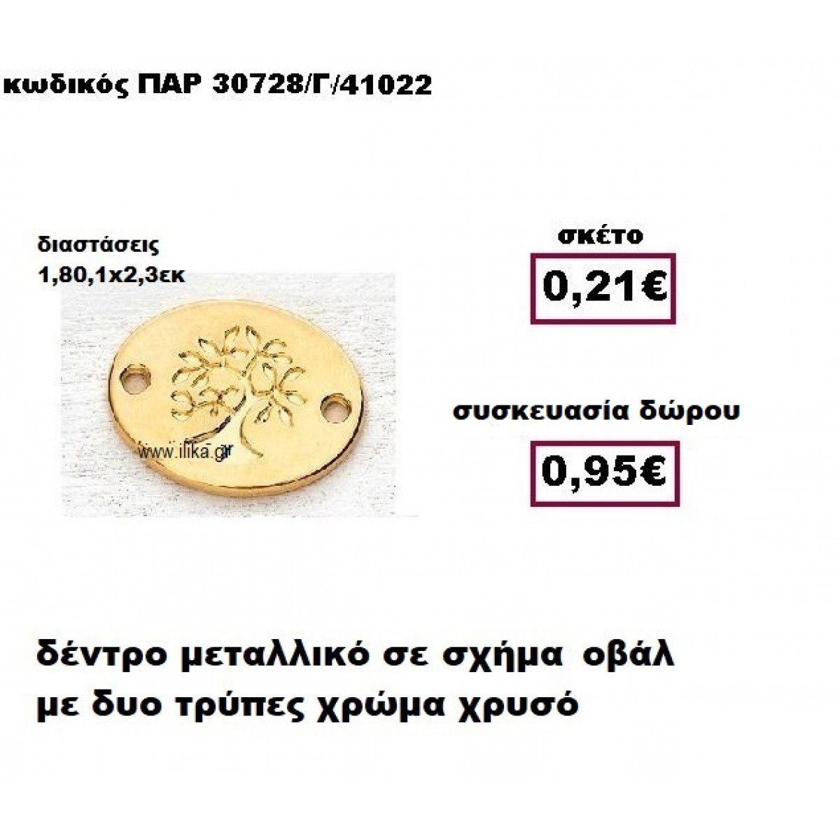 ΔΕΝΤΡΟ επίχρυσο οβάλ με δυο τρύπες γούρι-δώρο ΠΑΡ-30728/Γ/41022