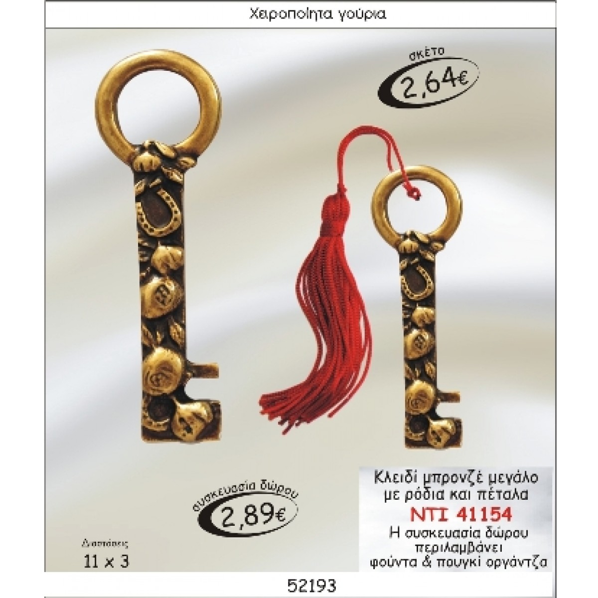 ΚΛΕΙΔΙ ΜΠΡΟΝΖΕ ΜΕΓΑΛΟ ΜΕ ΡΟΔΙΑ ΚΑΙ ΠΕΤΑΛΑ ΓΟΥΡΙ ΝΤΙ 41154