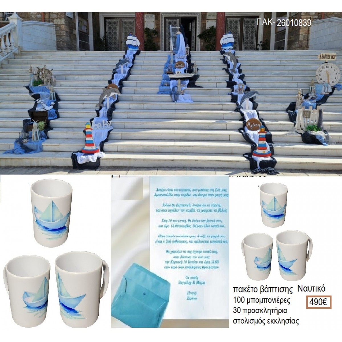 ΝΑΥΤΙΚΟ πακέτο βάπτισης 100 μπομπονιέρες 30 προσκλητήρια στολισμός εκκλησίας ΠΑΚ-26010839 490.00€!!!