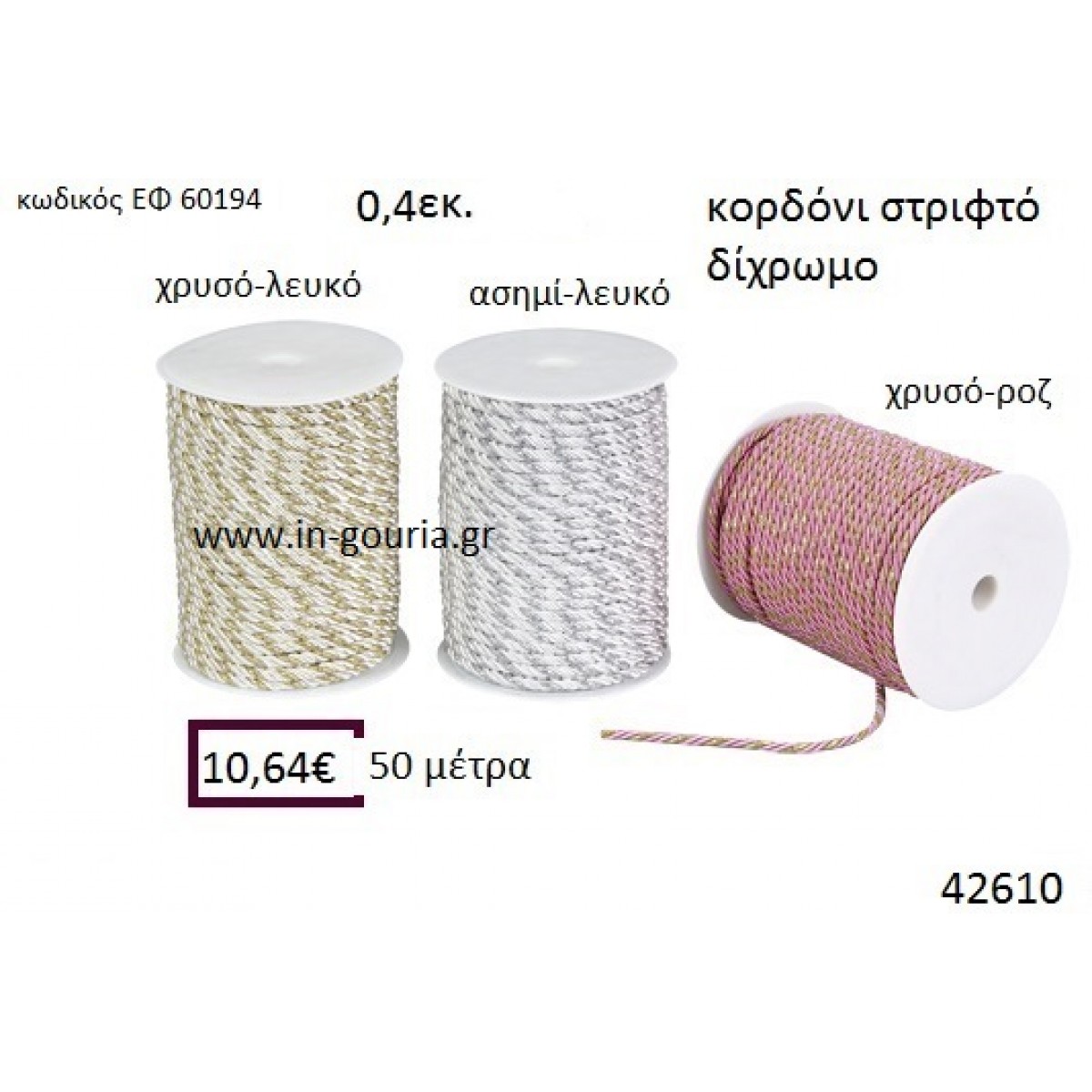 ΚΟΡΔΟΝΙ ΣΤΡΙΦΤΟ 50 μέτρων 0.4εκ. για γούρια-αμπαλάζ ΕΦ-60194