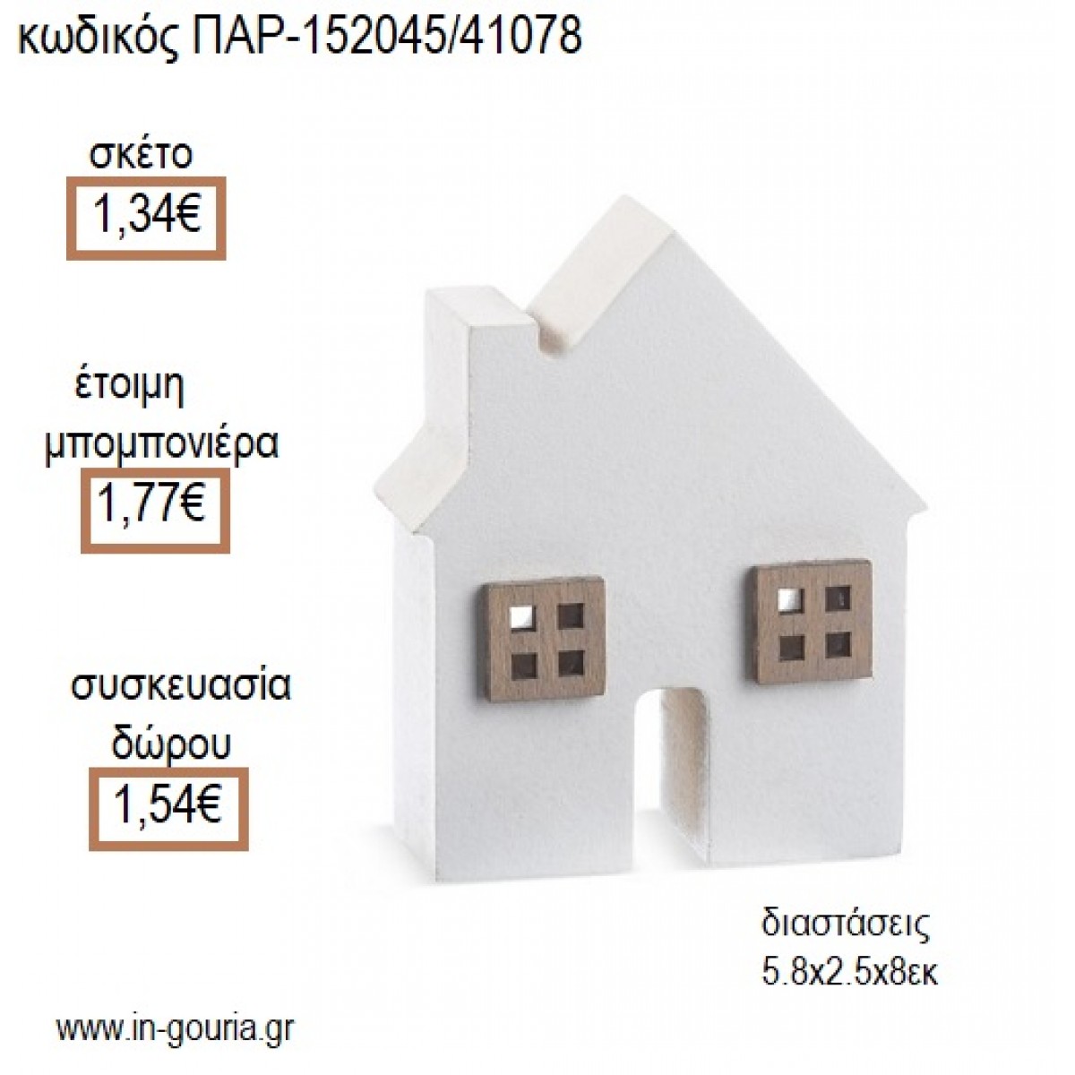 ΣΠΙΤΑΚΙ ΛΕΥΚΟ ΞΥΛΙΝΟ ΔΙΑΚΟΣΜΗΤΙΚΟ για μπομπονιέρες - γούρια ΠΑΡ-152045/41078 1.34€!!!