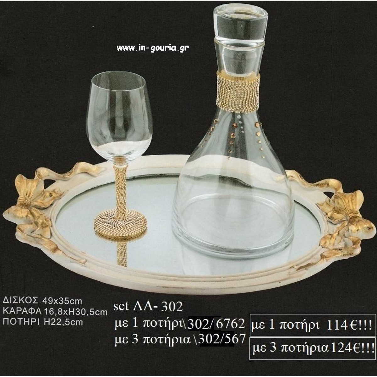 ΣΕΤ ΓΑΜΟΥ ΔΙΣΚΟΣ ΟΒΑΛ ΜΕ ΣΧΕΔΙΟ ΦΙΟΓΚΟΙ ΚΑΡΑΦΑ ΚΑΙ ΠΟΤΗΡΙ ΜΕ ΧΡΥΣΗ ΤΡΕΣΣΑ ΛΑ-302 114€!!!!