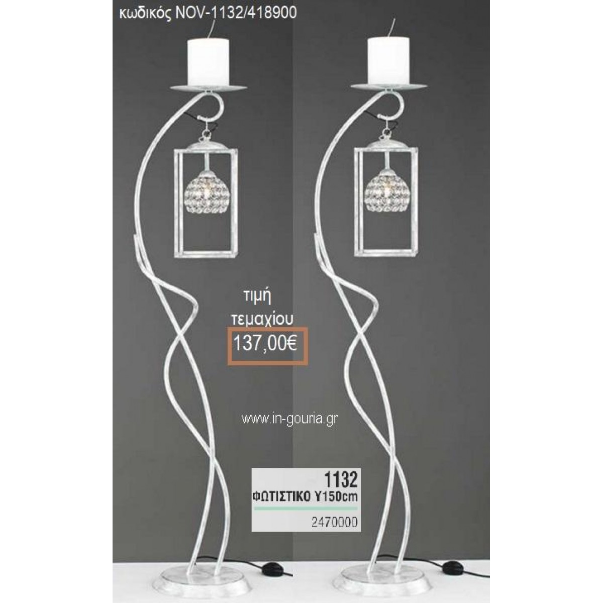 ΦΩΤΙΣΤΙΚΟ ΓΑΜΟΥ ΛΕΥΚΟ ΑΣΗΜΙ ΜΕ ΦΑΝΑΡΑΚΙ ΚΡΕΜΑΣΤΟ NOV-1132/418900 137.00€!!!