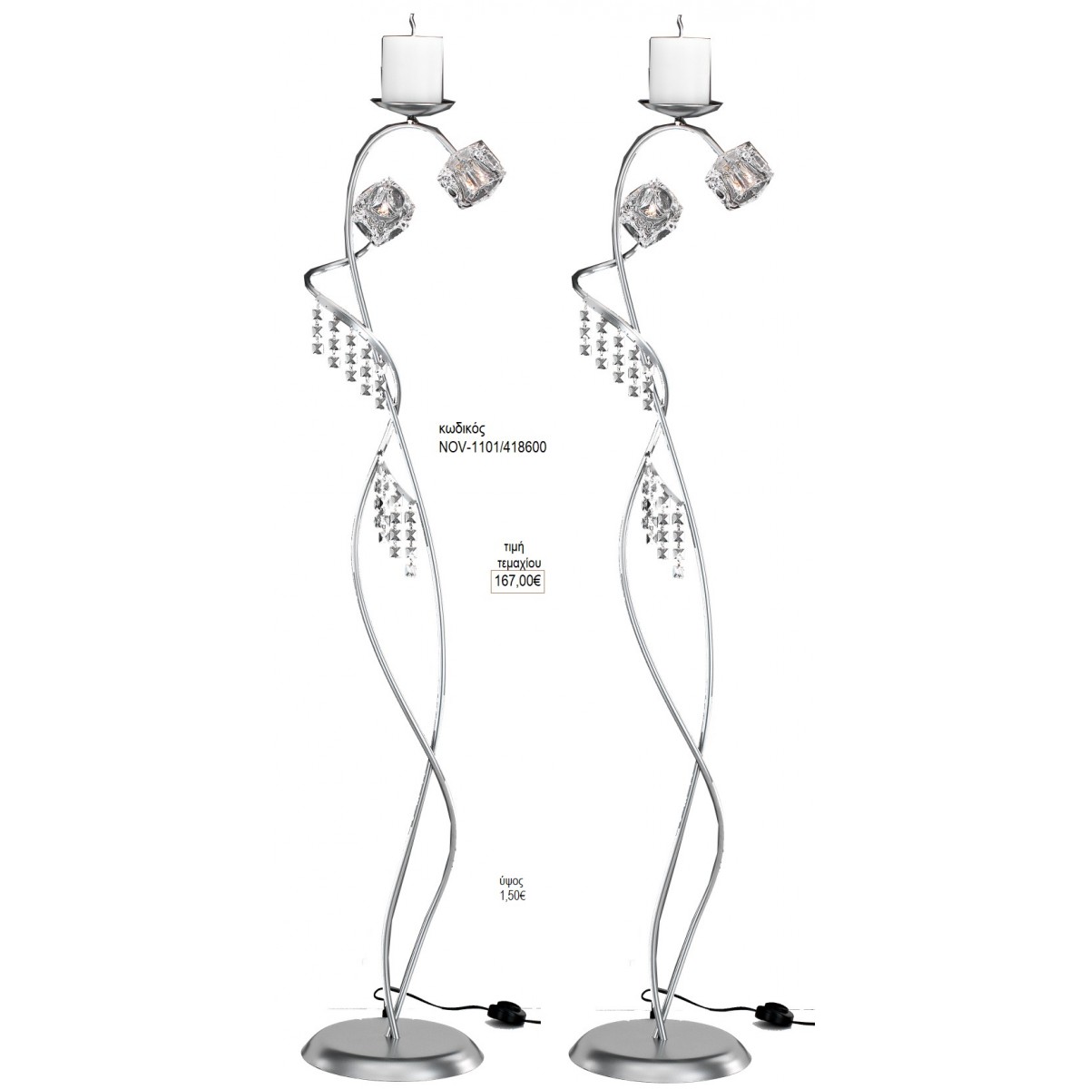 ΚΗΡΟΣΤΑΤΗΣ ΓΑΜΟΥ ΑΣΗΜΙ ΜΕ ΓΥΑΛΙΝΑ ΚΑΙ ΚΡΥΣΤΑΛΛΑΚΙΑ NOV-1101/418600 167.00€!!!