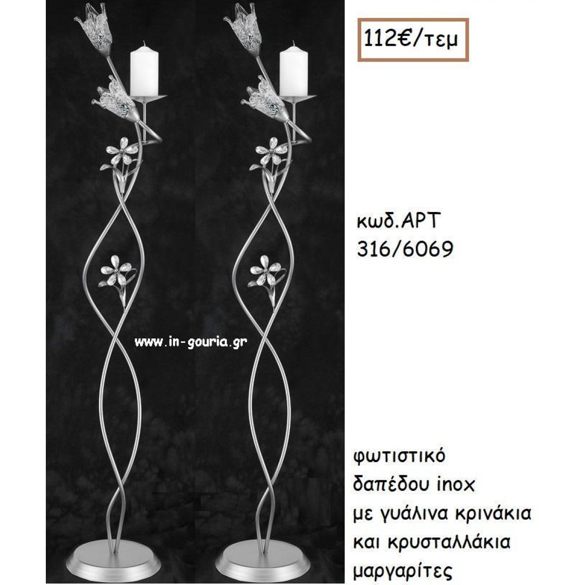 ΦΩΤΙΣΤΙΚΟ ΓΑΜΟΥ INOX ΜΕ ΓΥΑΛΙΝΑ ΚΡΙΝΑΚΙΑ ΚΑΙ ΚΡΥΣΤΑΛΛΑΚΙΑ ΜΑΡΓΑΡΙΤΕΣ ΑΡΤ Νο316/6069 112.00€!!!
