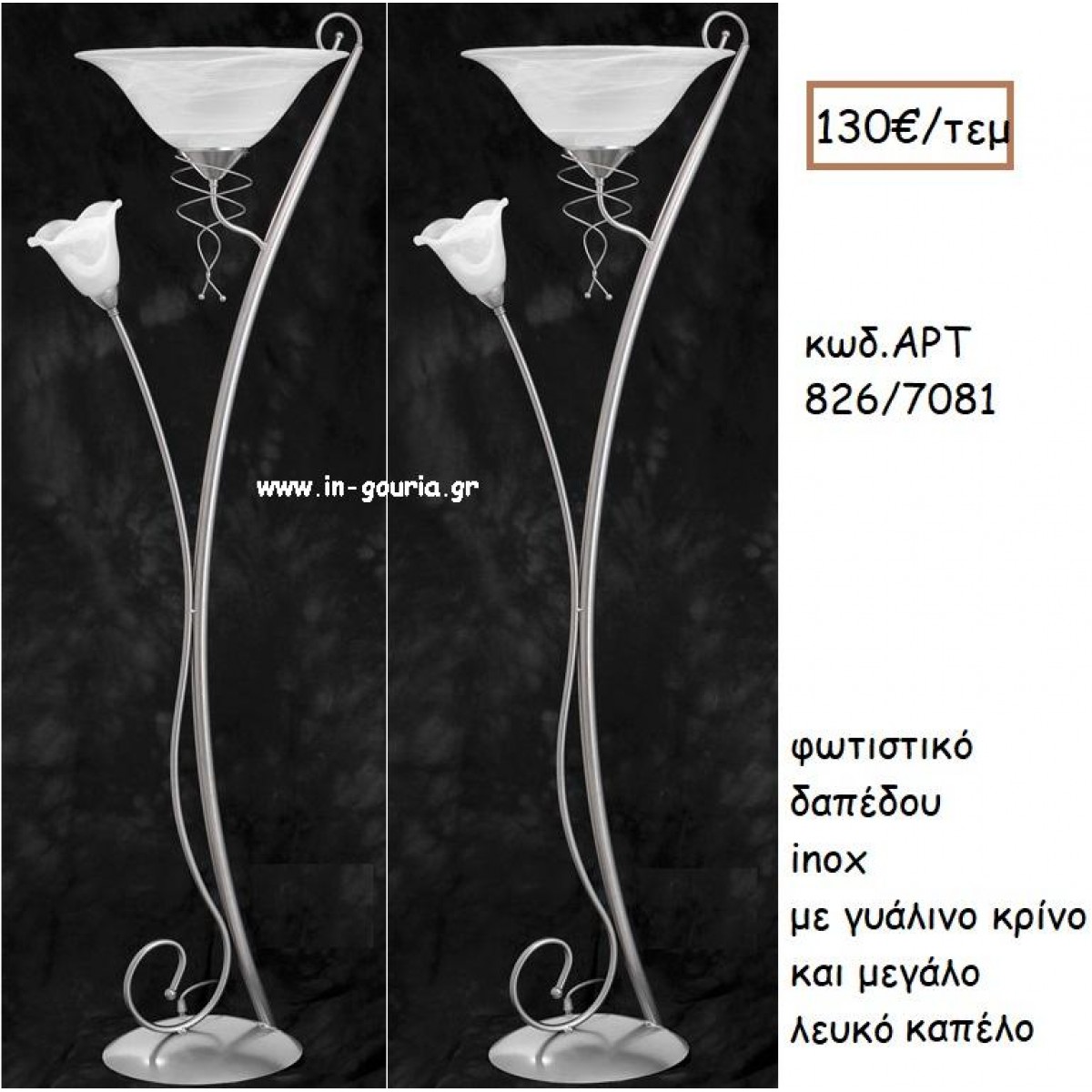 ΦΩΤΙΣΤΙΚΟ ΓΑΜΟΥ INOX ΜΕ ΓΥΑΛΙΚΟ ΚΡΙΝΟ ΚΑΙ ΜΕΓΑΛΟ ΓΥΑΛΙΝΟ ΚΑΠΕΛΟ ΑΡΤ Νο826-7081 130.00€!!!