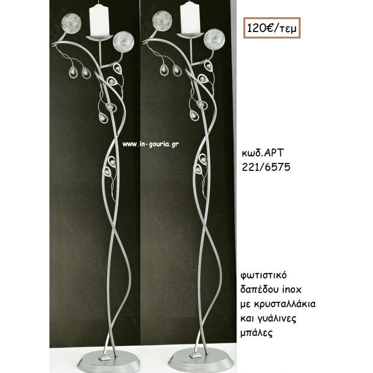 ΦΩΤΙΣΤΙΚΟ ΓΑΜΟΥ INOX ΜΕ ΚΡΥΣΤΑΛΛΑΚΙΑ ΚΑΙ ΓΥΑΛΙΝΕΣ ΜΠΑΛΕΣ ΑΡΤ Νο221-6575 120.00€!!!