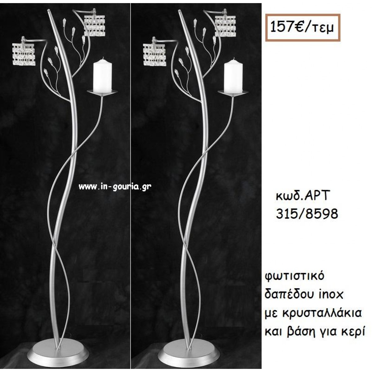ΦΩΤΙΣΤΙΚΟ ΓΑΜΟΥ INOX ΜΕ ΚΡΥΣΤΑΛΛΑΚΙΑ ΚΑΙ ΒΑΣΗ ΓΙΑ ΚΕΡΙ ΑΡΤ Νο315/8598 157.00€!!!