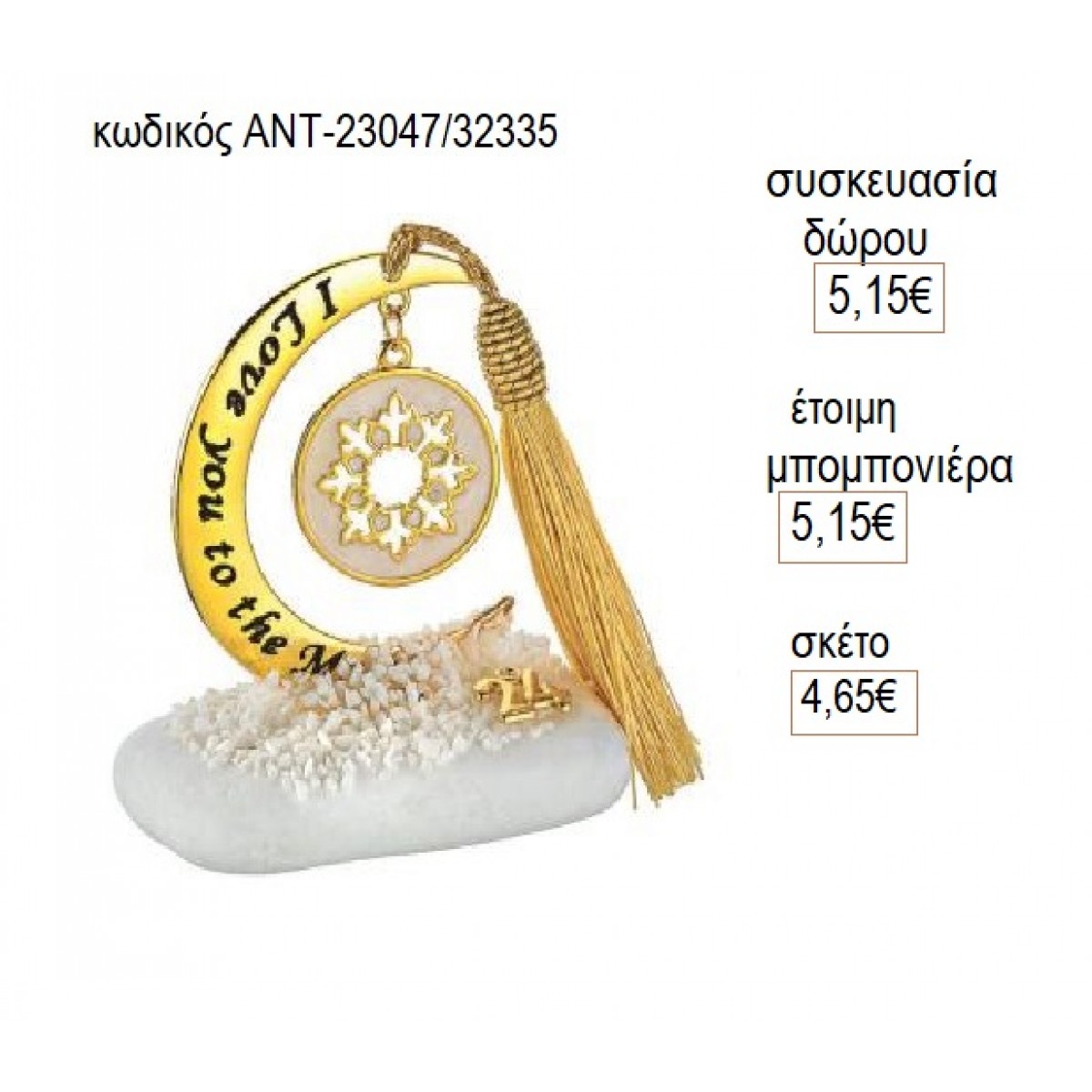 Μπορείτε να το ζητήσετε ως έτοιμη μπομπονιέρα με άριστο δέσιμο με κρυσταλιζέ τούλι 24χ24εκ.και 5 κουφέτα αμυγδάλου ή 5 κουφέτα πικολίνο (σοκολάτας) ή 15 σμάρτυς και 2 κορδέλες σατέν 0.03εκ.