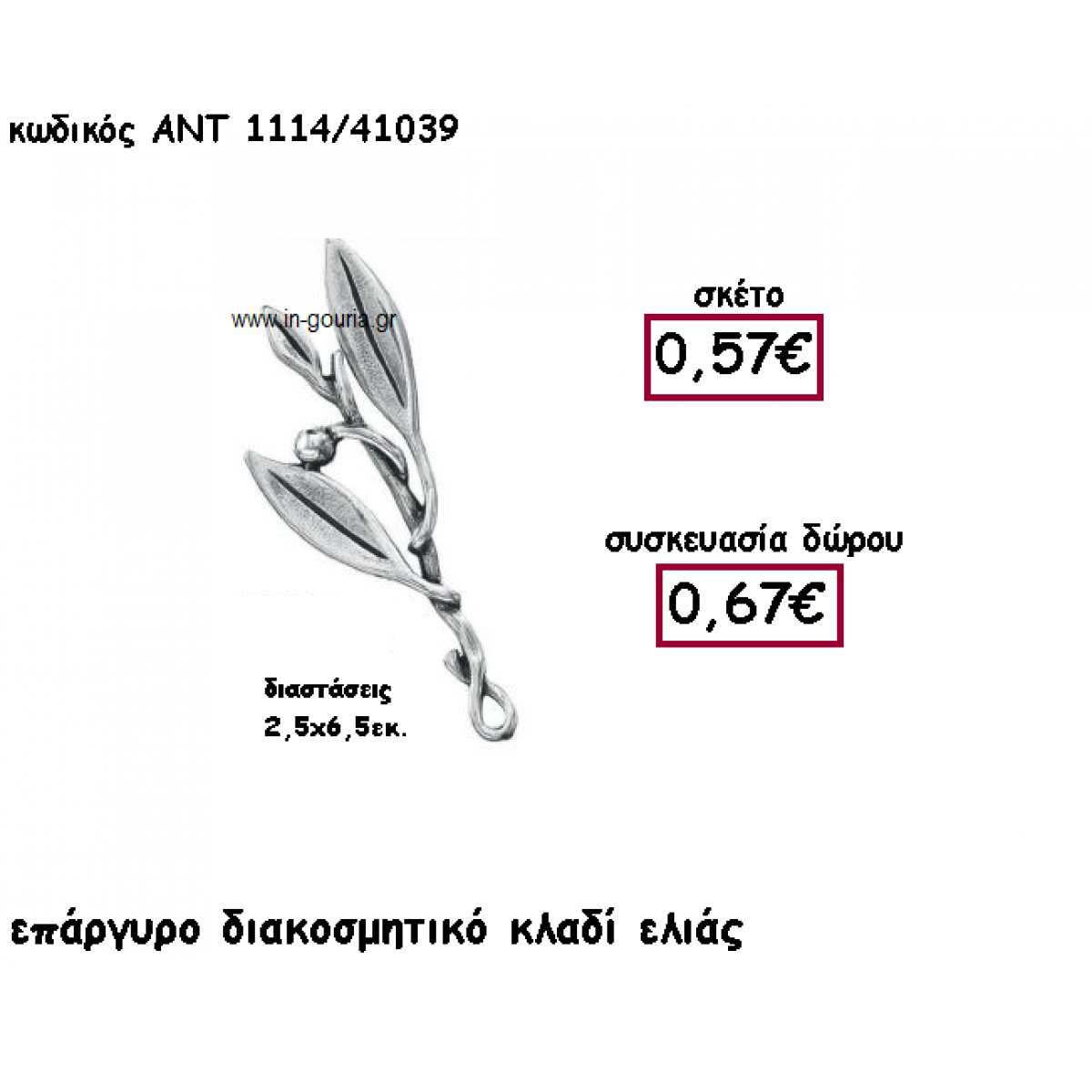 ΚΛΑΔΙ ΕΛΙΑΣ ΔΙΑΚΟΣΜΗΤΙΚΟ ΕΠΑΡΓΥΡΟ για γούρι-δώρο ΑΝΤ-1114/41039