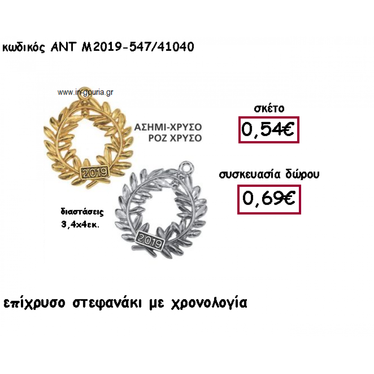 ΣΤΕΦΑΝΙ ΕΠΑΡΓΥΡΟ Η' ΕΠΙΧΡΥΣΟ ΜΕ ΧΡΟΝΟΛΟΓΙΑ για γούρι-δώρο ΑΝΤ-Μ2019-547/41040