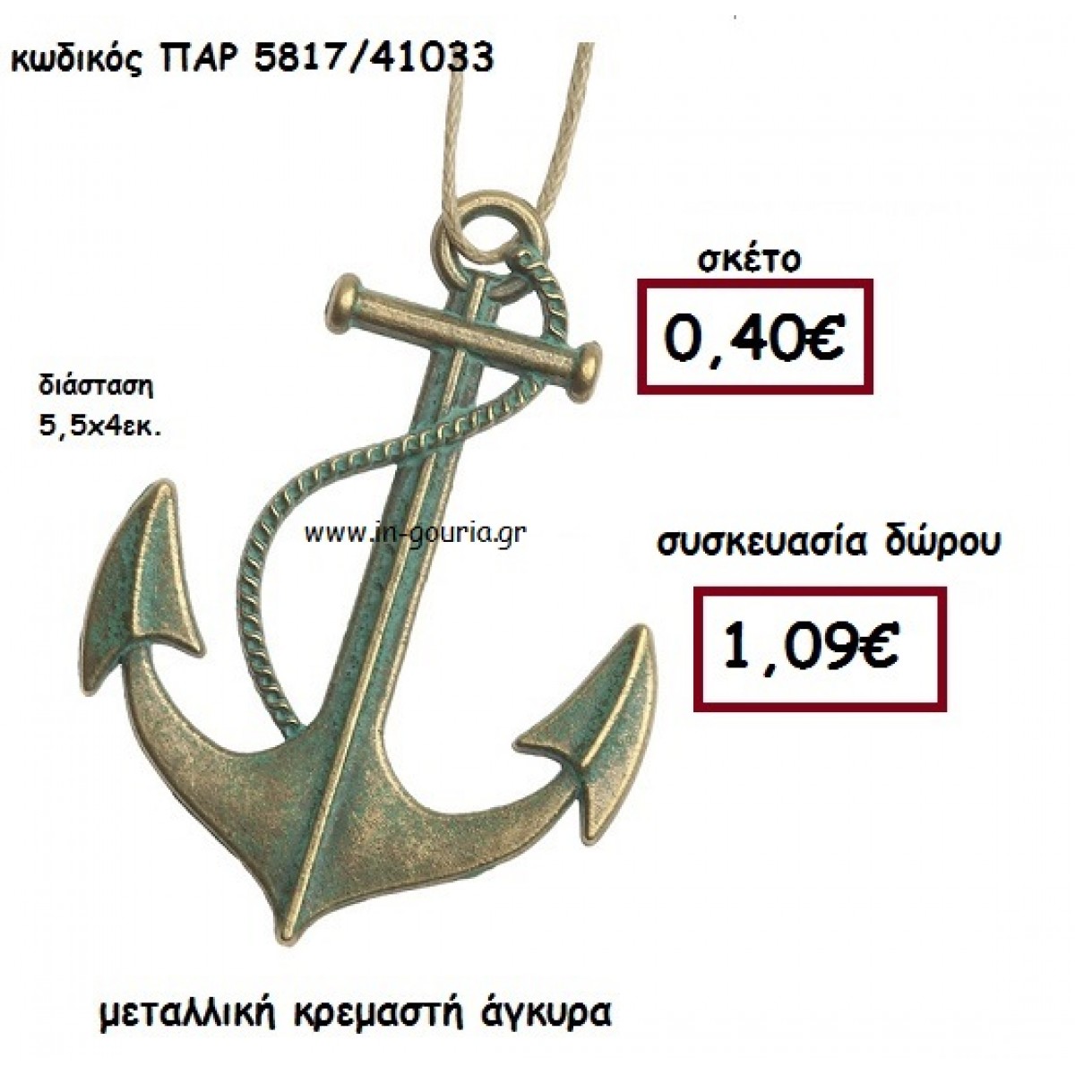 ΑΓΚΥΡΑ μεταλλική κρεμαστή γούρι-δώρο ΠΑΡ-5817