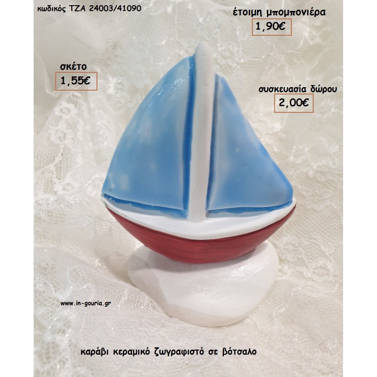 ΚΑΡΑΒΙ ΚΕΡΑΜΙΚΟ ΖΩΓΡΑΦΙΣΤΟ ΣΕ ΒΟΤΣΑΛΟ για γούρι - δώρο ΤΖΑ-24003/41090 1.55€