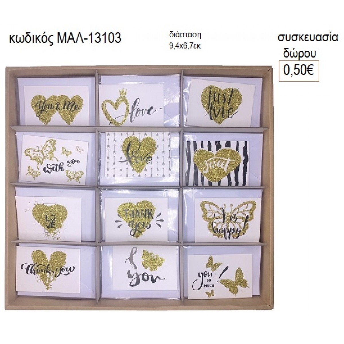 ΚΑΡΔΙΕΣ LOVE ΧΡΥΣΟ ΜΑΥΡΟ ΚΑΡΤΑ ΕΥΧΕΤΗΡΙΑ για δώρο ΜΑΛ-13103 0.50€!!!