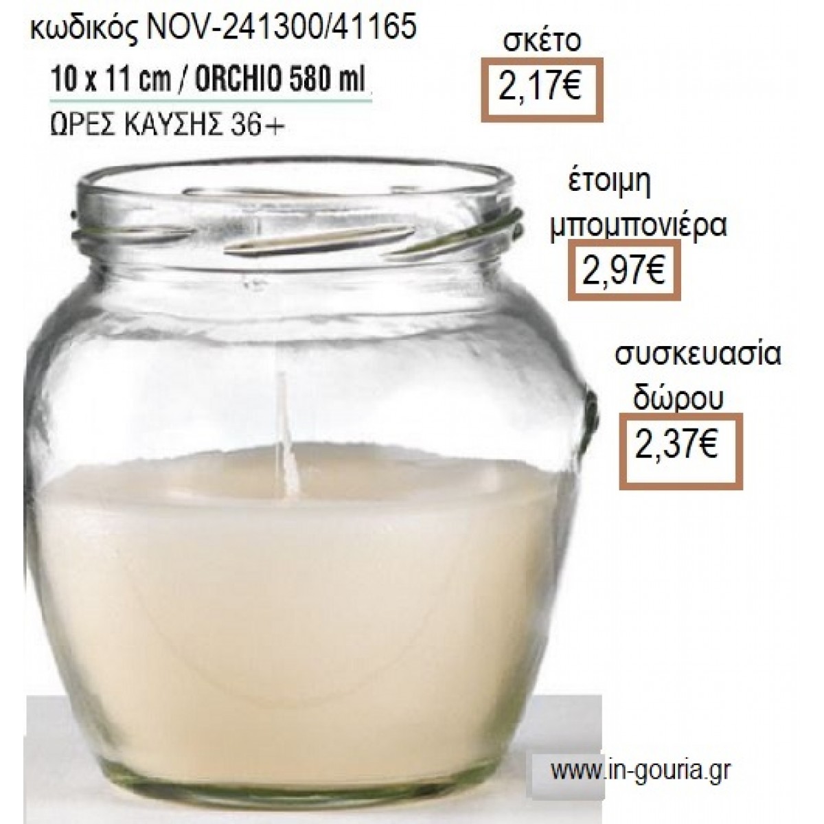 ΚΕΡΙ ΣΕ ΓΥΑΛΙΝΟ ΠΟΤΗΡΙ 10x11ΕΚ για μπομπονιέρες - γούρια NOV-241300/41165 2.17€!!!