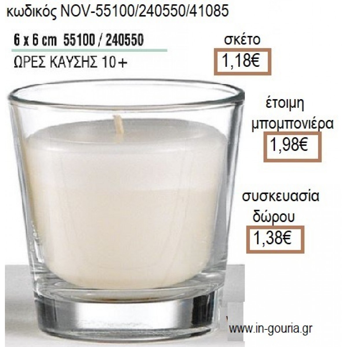 ΚΕΡΙ ΣΕ ΓΥΑΛΙΝΟ ΠΟΤΗΡΙ 6x6ΕΚ για μπομπονιέρες - γούρια NOV-55100/240550/41085 1.18€!!!