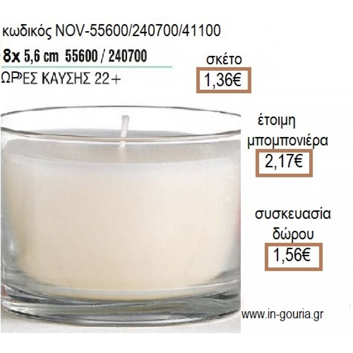 ΚΕΡΙ ΣΕ ΓΥΑΛΙΝΟ ΠΟΤΗΡΙ ΣΤΡΟΓΓΥΛΟ 8x5,6ΕΚ για μπομπονιέρες - γούρια NOV-55600/240700/41100 1.36€!!!
