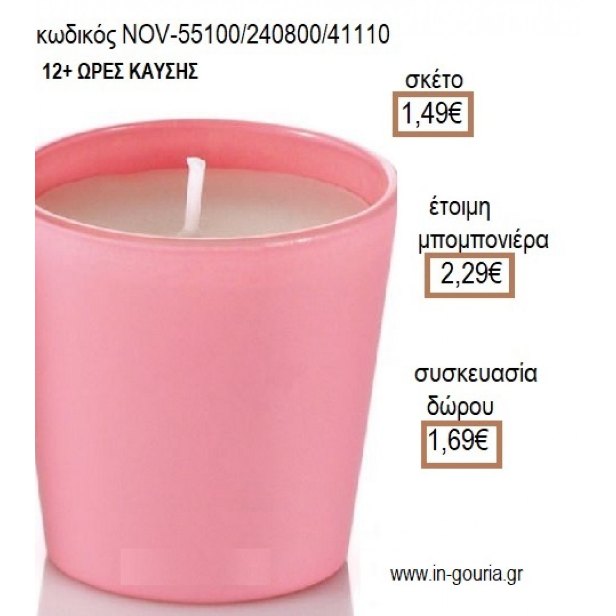 ΚΕΡΙ ΣΕ ΓΥΑΛΙΝΟ ΠΟΤΗΡΙ ΧΡΩΜΑ ΡΟΖ για μπομπονιέρες - γούρια NOV-55100/240800/41110 1.49€!!!