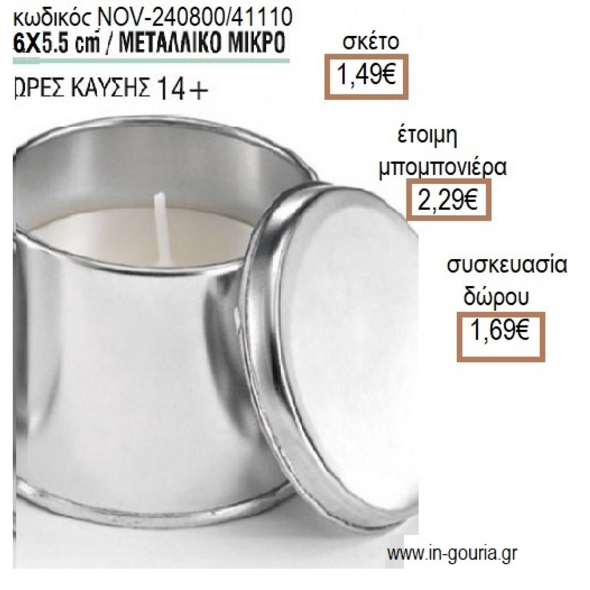 ΚΕΡΙ ΣΕ ΜΕΤΑΛΛΙΚΟ ΚΟΥΤΙ ΜΙΚΡΟ 6x5,5ΕΚ για μπομπονιέρες - γούρια NOV-240800/41110 1.49€!!!