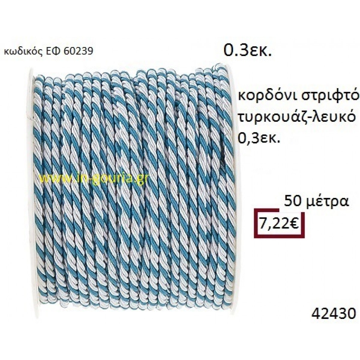 ΚΟΡΔΟΝΙ ΣΤΡΙΦΤΟ 50 μέτρων 0.3εκ. για μπομπονιέρες-αμπαλάζ ΕΦ-60239