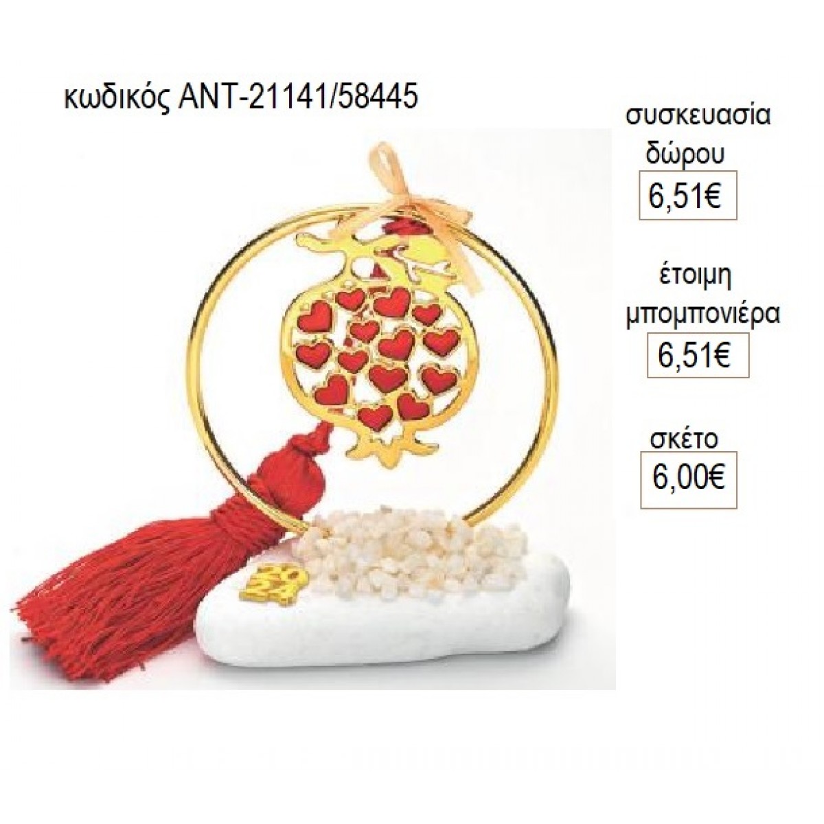 Μπορείτε να το ζητήσετε ως έτοιμη μπομπονιέρα με άριστο δέσιμο με κρυσταλιζέ τούλι 24χ24εκ.και 5 κουφέτα αμυγδάλου ή 5 κουφέτα πικολίνο (σοκολάτας) ή 15 σμάρτυς και 2 κορδέλες σατέν 0.03εκ.