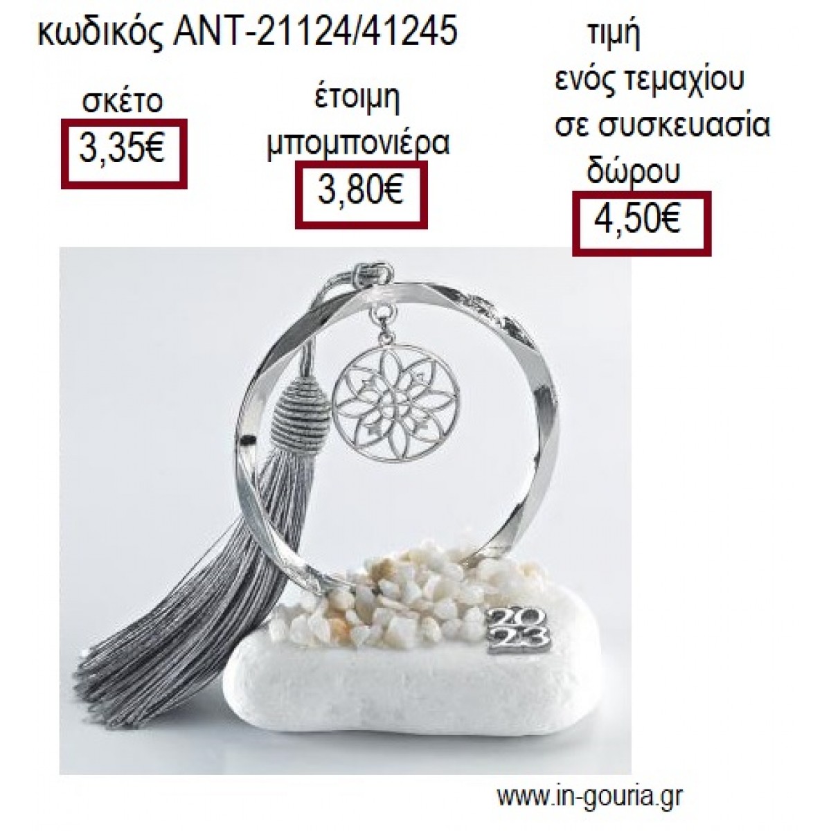 Μπορείτε να το ζητήσετε ως έτοιμη μπομπονιέρα με άριστο δέσιμο με κρυσταλιζέ τούλι 24χ24εκ.