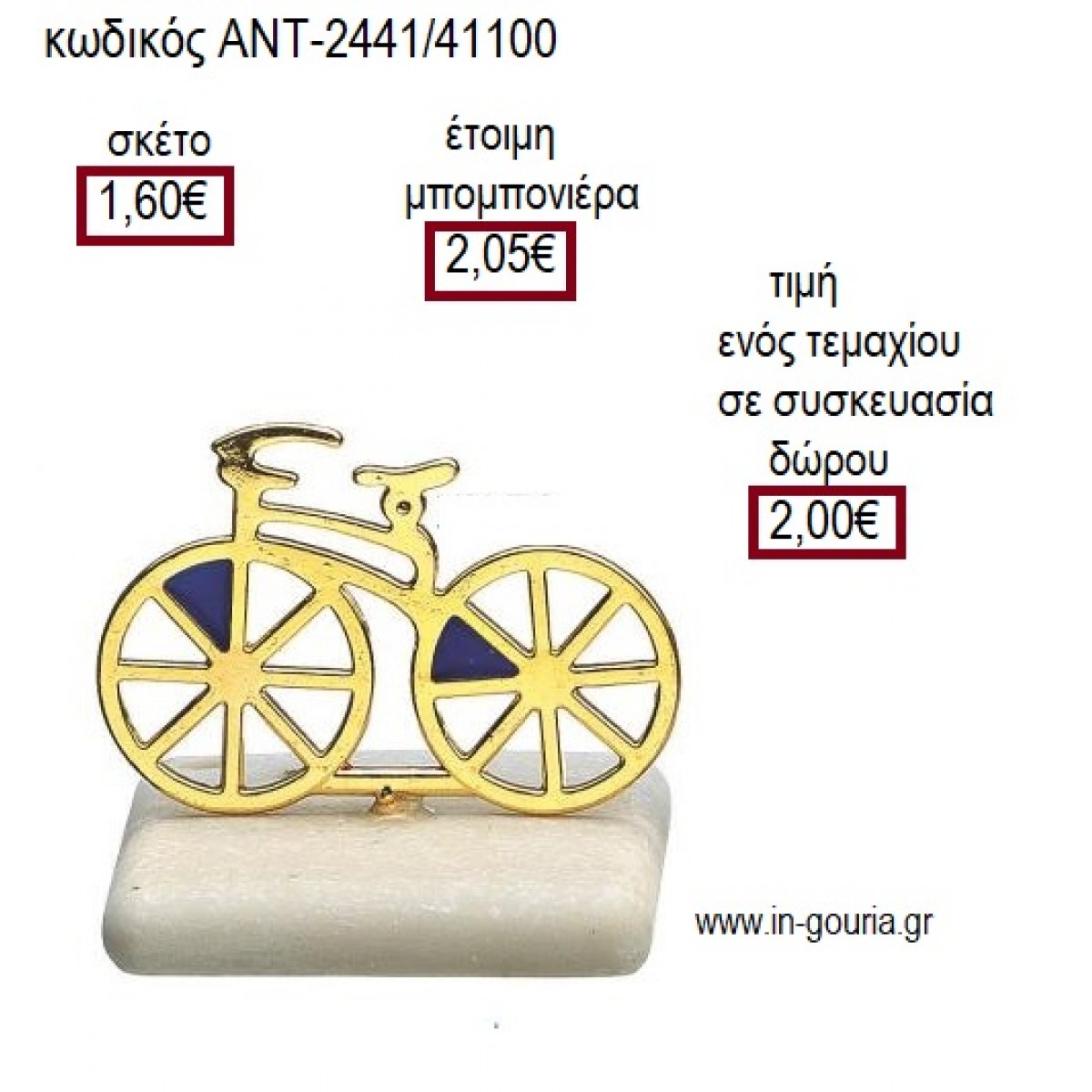 ΠΟΔΗΛΑΤΟ ΜΕΤΑΛΛΙΚΟ ΕΠΙΧΡΥΣΟ ΠΑΝΩ ΣΕ ΒΟΤΣΑΛΟ για μπομπονιέρες - γούρια ΑΝΤ-2441/41100 1.60€!!!