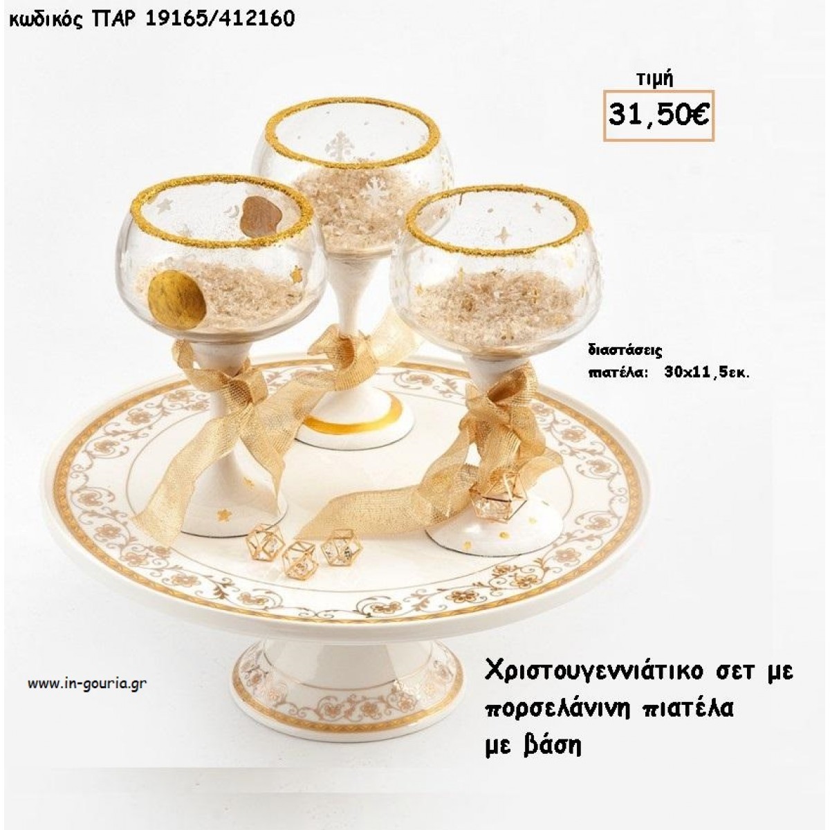 ΠΙΑΤΕΛΑ ΠΟΡΣΕΛΑΝΙΝΗ ΜΕ ΒΑΣΗ ΚΑΙ ΠΟΤΗΡΙΑ ΔΙΑΚΟΣΜΗΜΕΝΑ ΧΡΙΣΤΟΥΓΕΝΝΙΑΤΙΚΟ ΣΕΤ για γούρι - δώρο ΠΑΡ-19165/412160 31.50€!!!