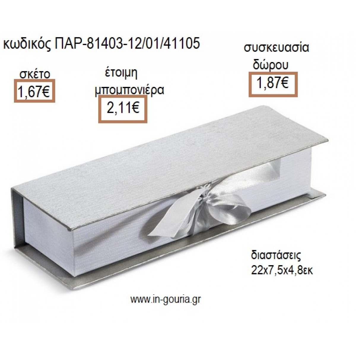 ΚΑΣΕΤΙΝΑ ΧΑΡΤΙΝΗ ΑΣΗΜΙ ΧΡΩΜΑ ΜΕ ΚΟΡΔΕΛΑ για μπομπονιέρες - γούρια ΠΑΡ-81403-12/01/41105 1.67€!!!
