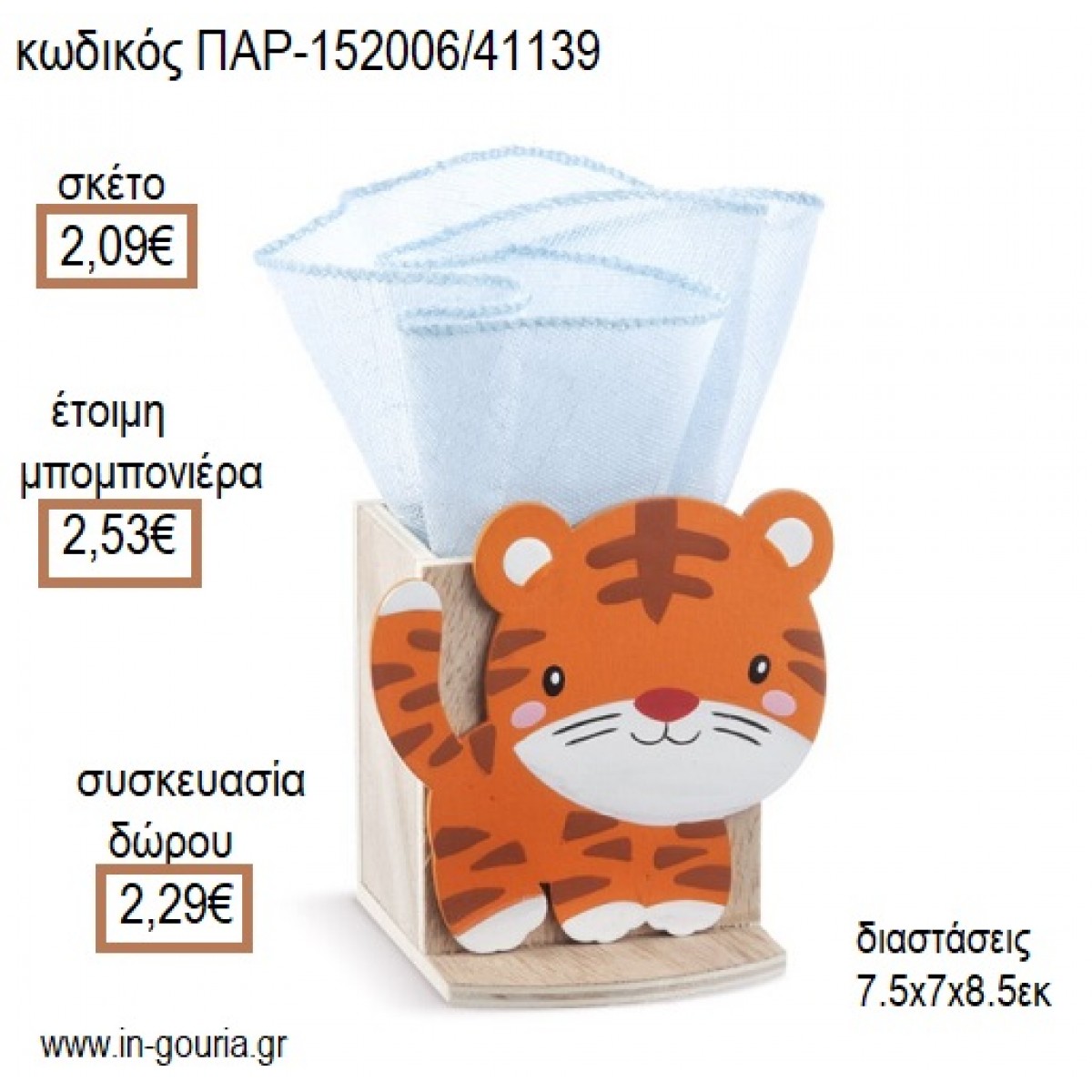 ΤΙΓΡΗΣ ΞΥΛΙΝΟ ΚΟΠΤΙΚΟ ΣΕ ΞΥΛΙΝΗ ΜΟΛΥΒΟΘΗΚΗ για μπομπονιέρες - γούρια ΠΑΡ-152006/41139 2.09€!!!